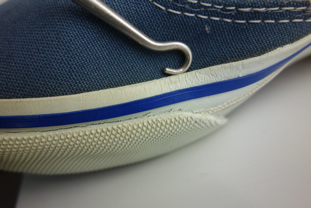 unworn however both shoes show rubber yellowing towards the toes. rubber is dry & wrinkles upon bend however should hold up to normal wear. wear at own risk