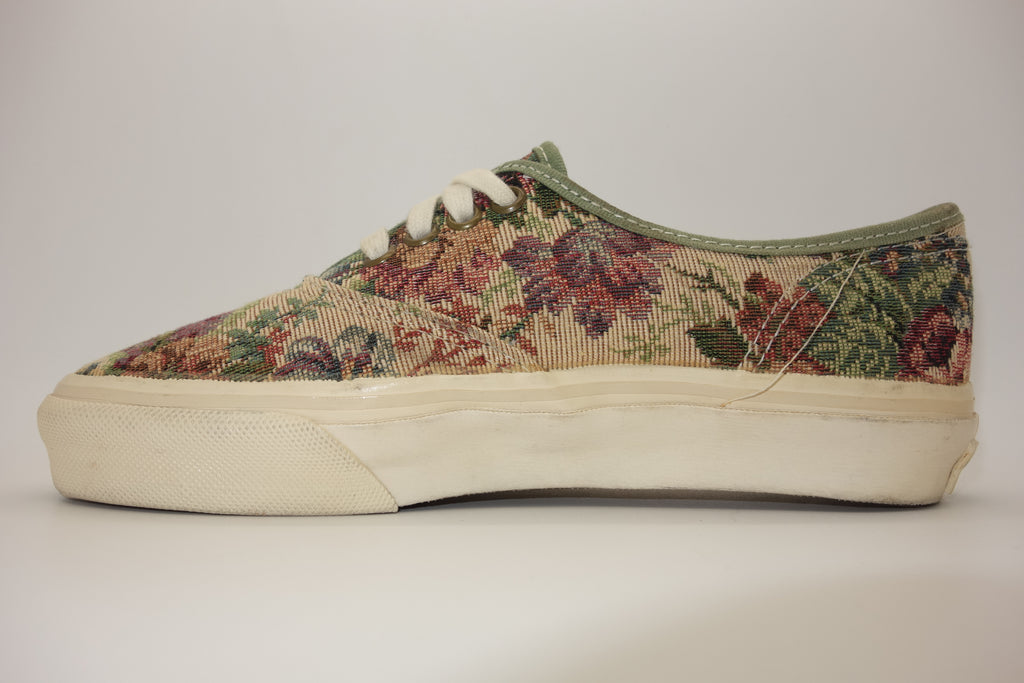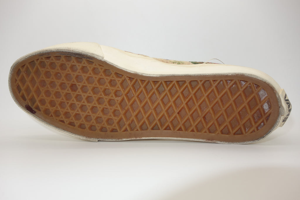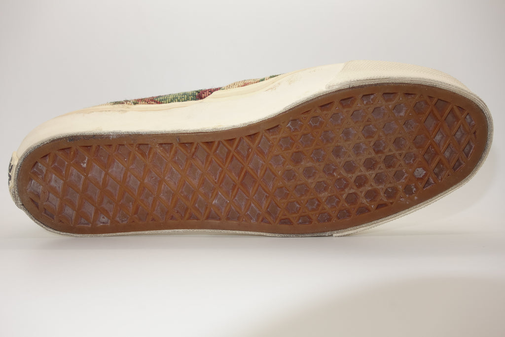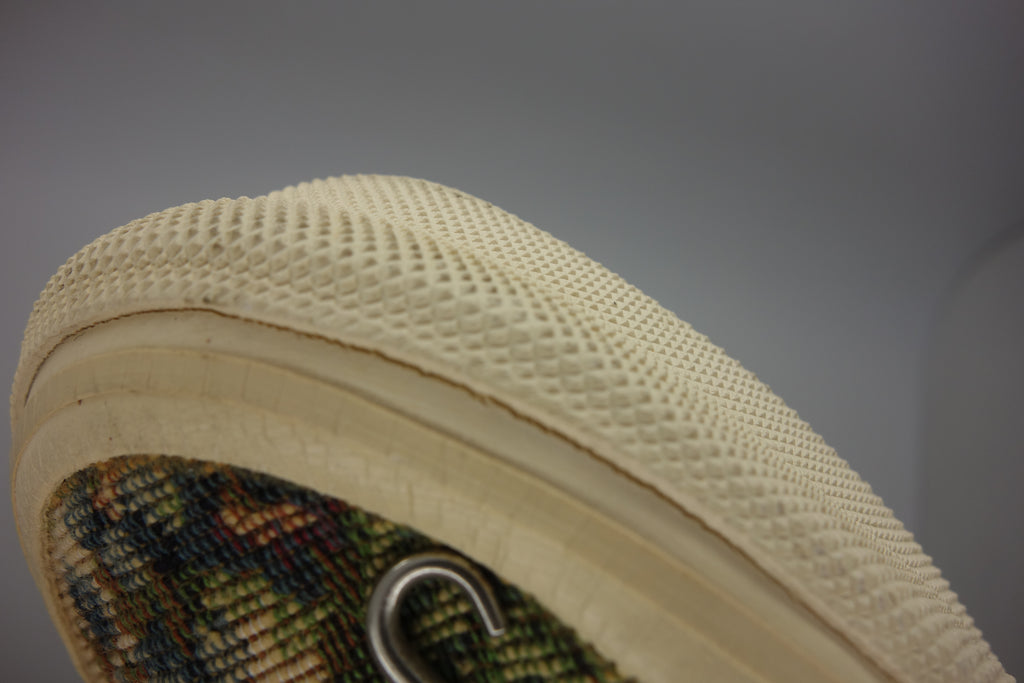 very good used condition. significant wrinkling upon bend to rubber midsole & minor stress cracking. the rubber on the left shoe is dry & the first foxing shows minor surface cracking, however from experience the malleable & supple ecru rubber scene should hold up to normal wear