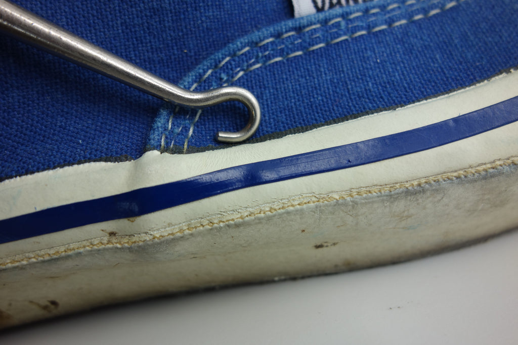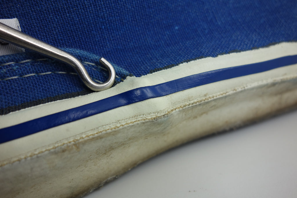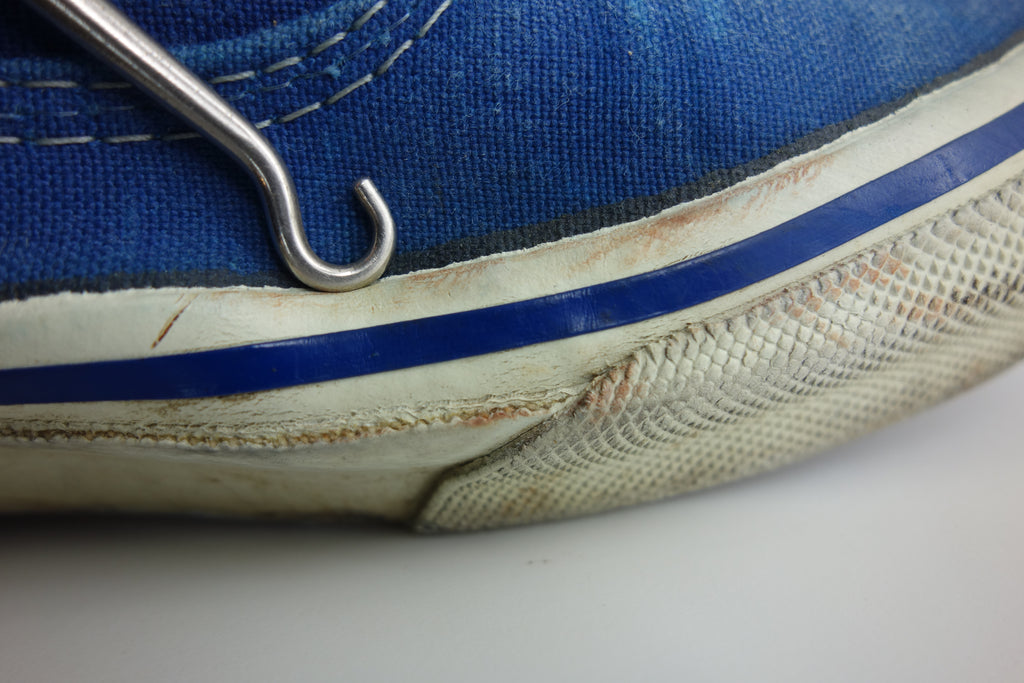excellent used condition work only a handful of times. all rubber remains soft & flexible. distressed navy has it looking royal blue.