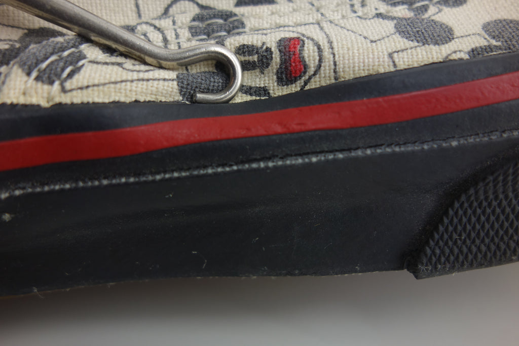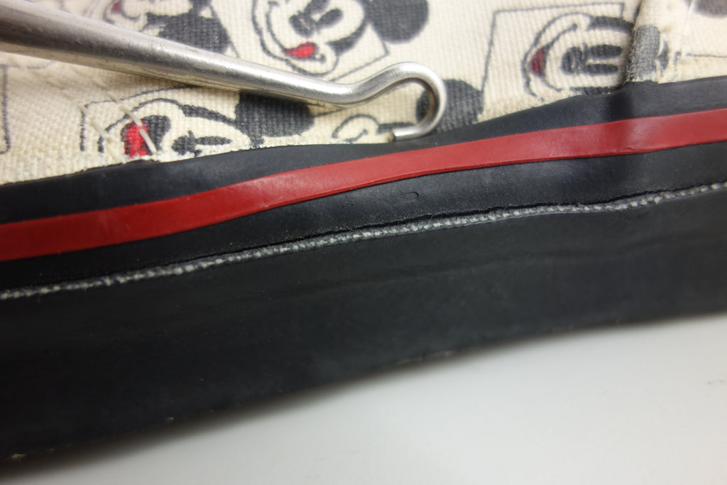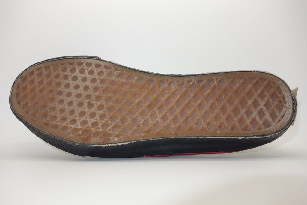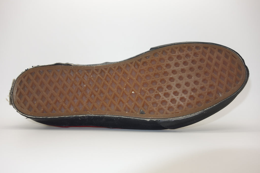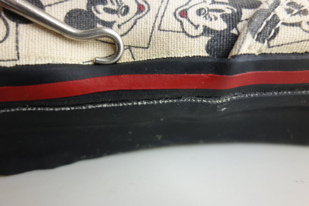 very good used condition. minor stress cracking only from crush injury & all rubber remains soft & flexible. US9 is barely visible & confident of that. 1 vinyl heel insert was removed. mickey lace locks not included.
