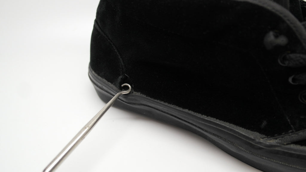like new condition, only worn a handful of times. rare velvet mens size! there is a loose stitch on the right medial heel counter however this will not effect wear.