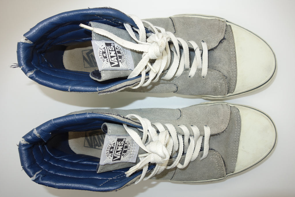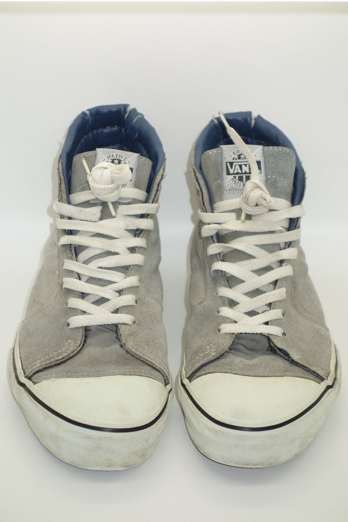 very good used condition. all the rubber remains soft & flexible. some splitting to the top vinyl collar exposing the webbing for the styrofoam underneath. internally & straucturally without issue. the colour spec is blue but essentially look grey. size not visible but confident of US11.5 if not US11. check measures