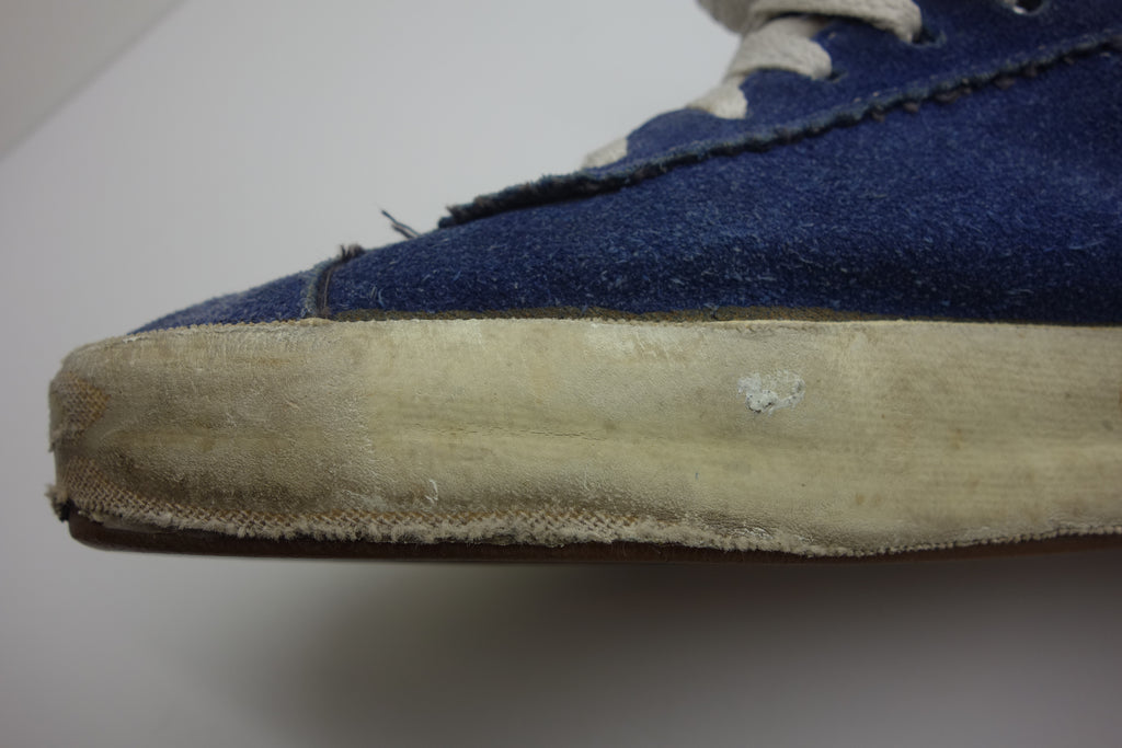superb used condition. apparently still made in usa however this is a transitional model from the crossover period. removeable cupsole, bloated fit, matte foxing, late logo, inferior uppers & lacking the canvas friction underlay. most likely 'assembled' in usa.... but still superior to later eastern productions. listed as US5.5 equivalent, maybe they fit big as US6. check measures!