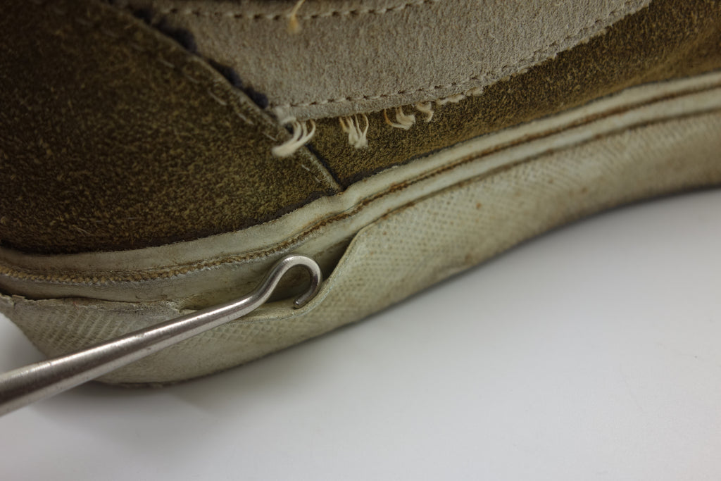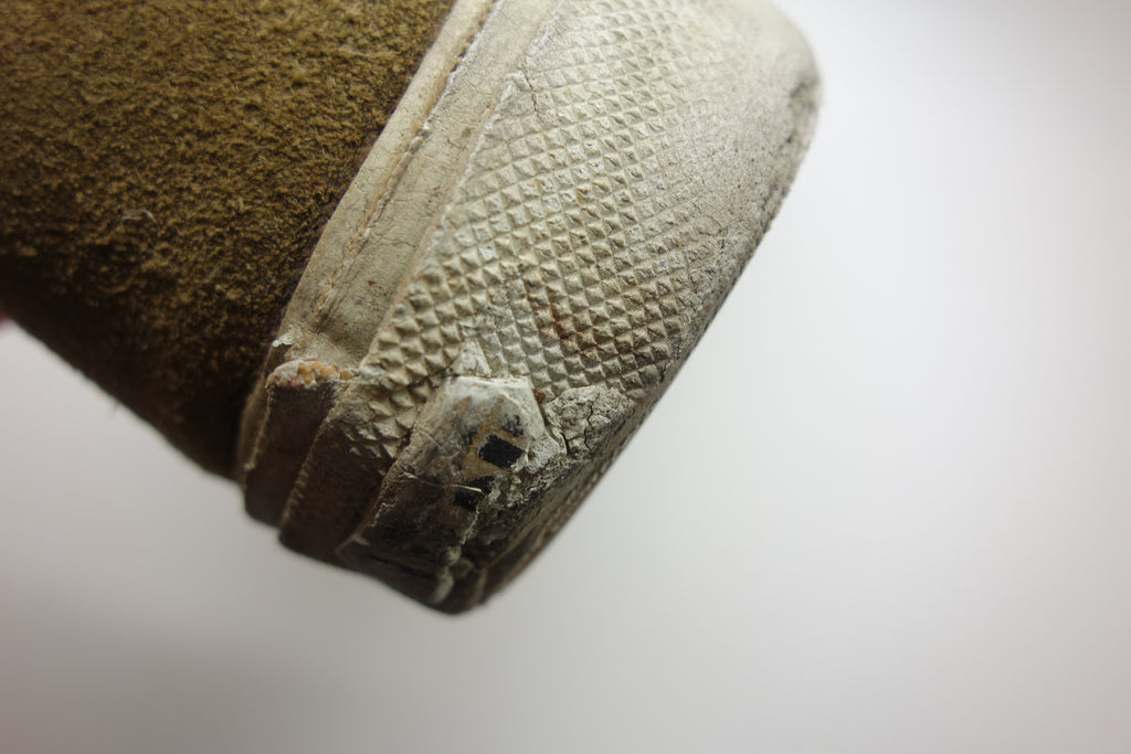 good used condition. the first foxing shows some dryness however remains malleable.... & being so short should not effect wear/longevity. the friction below, bumper & waffle remain soft & flexible.