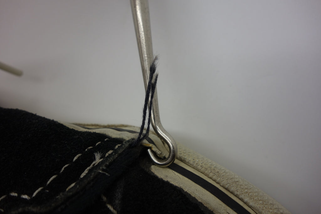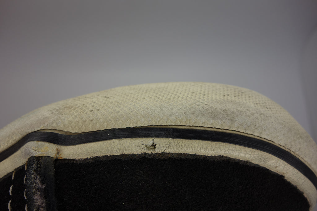 very good used condition. all rubber remains soft & flexible except for the toe area which shows hardening & brittleness. there will be further cracking & loss of rubber in this area however the crucial bend areas are unaffected & these will hold up to normal wear. size barely visible as i think US4. check measures. laces not original