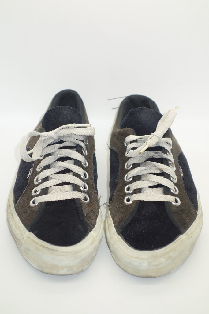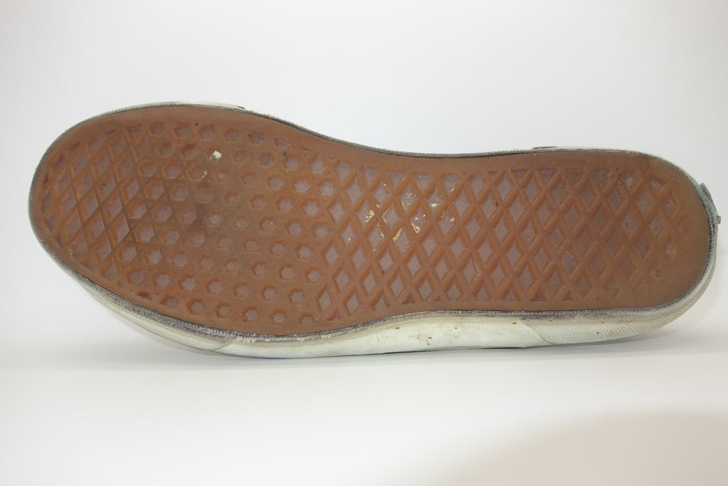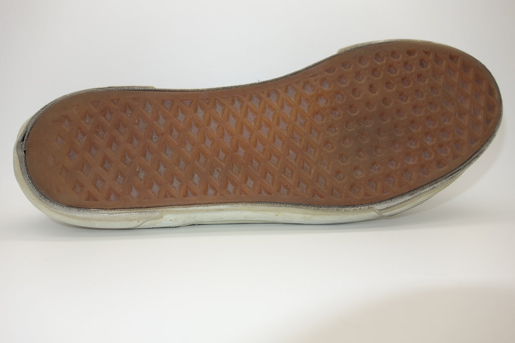 good used condition. skated sparingly with some rounding to bumpers. all rubber remains soft & flexible except a small area on the lateral heel of the right shoe, which should not effect wear/longevity. there is 1 hole is the foam insole whereby the foam has eroded near the ball, but wont effect wear/comfort. size not visible however fairly confident of US8