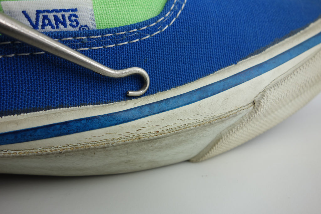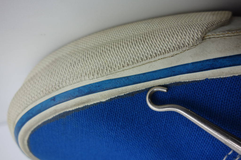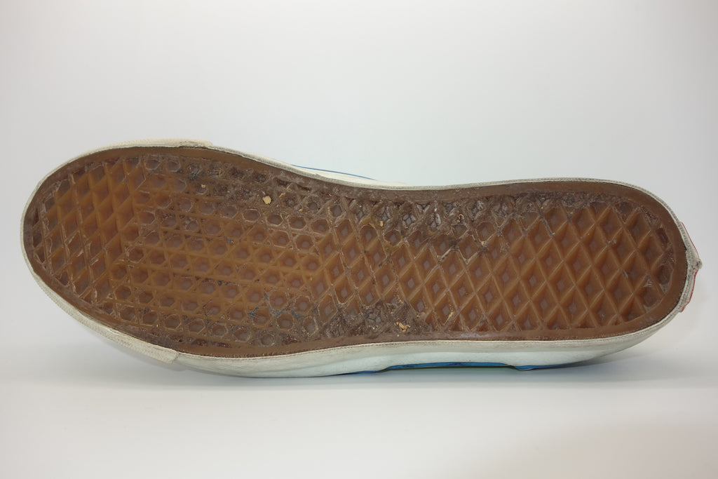 superb used(?) condition. possibly only tried on in store.... & the right shoe looks mint! despite some discolouration to the foxing stripe & stress cracking to the left shoe, all rubber remains soft & flexible.