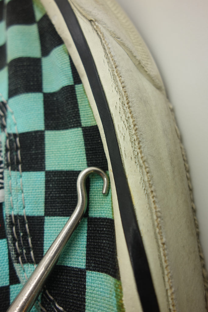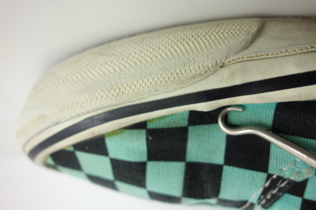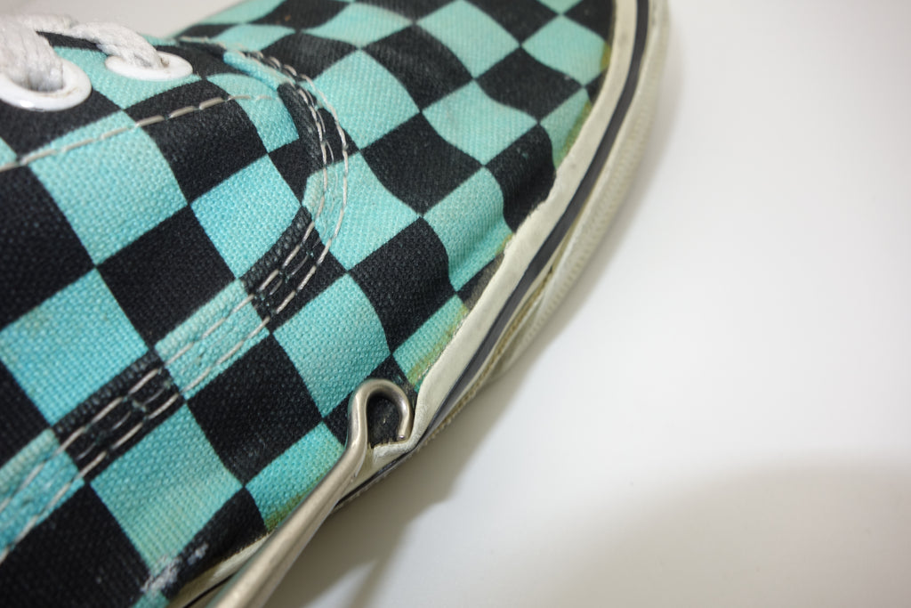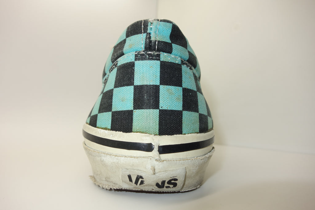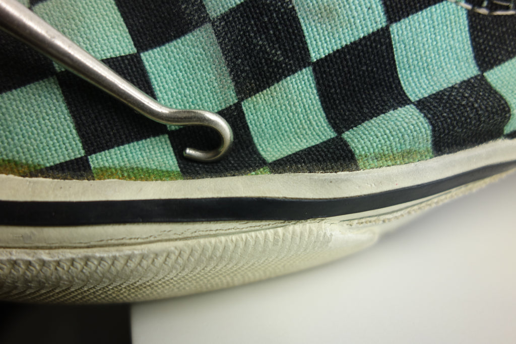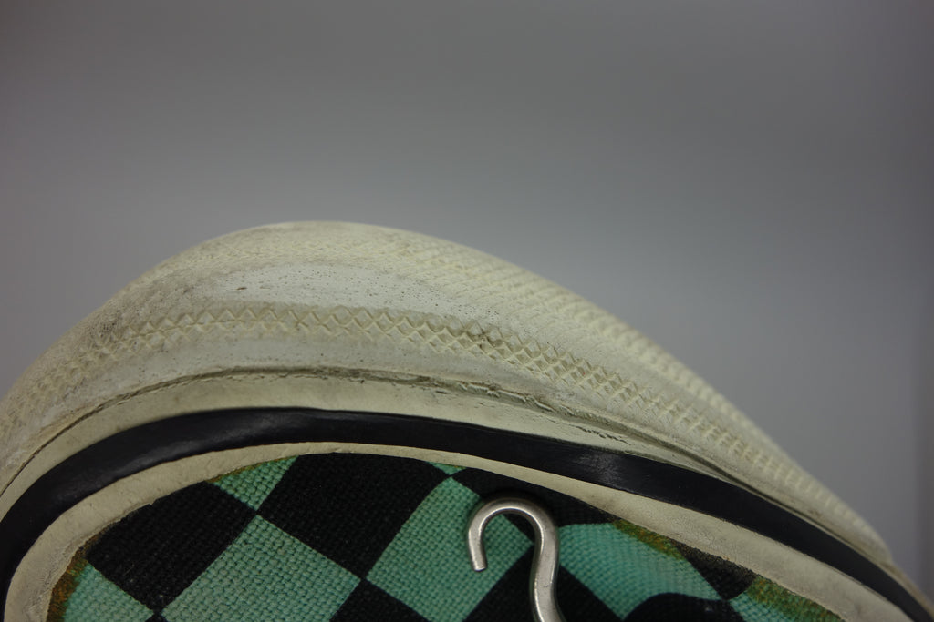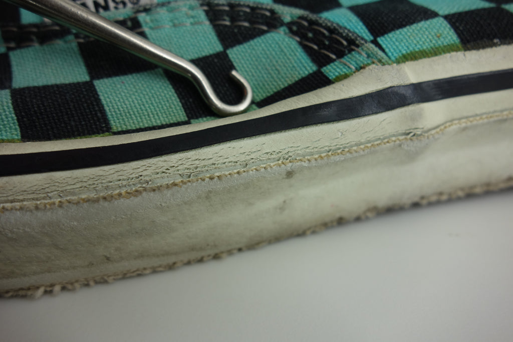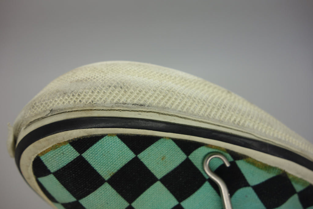 good used condition. first foxing is a little dry however all rubber remains soft & flexible despite widespread stress cracking from crush injury & some separation from uppers at creases. the internal toe cap has stiffened on both & the left shows curling & bunching which may cause discomfort.