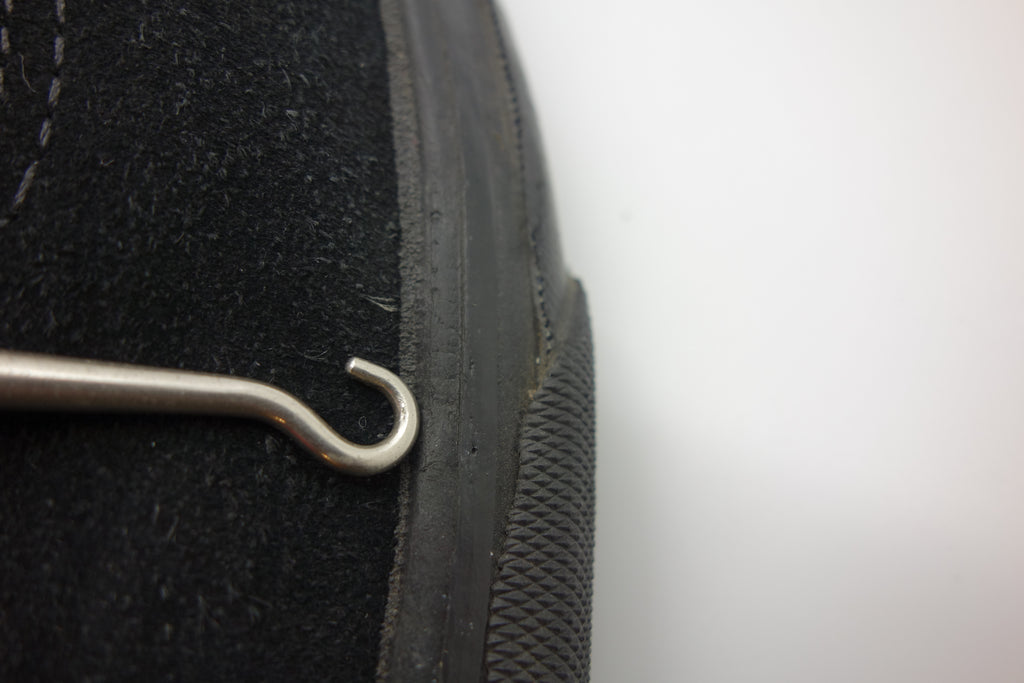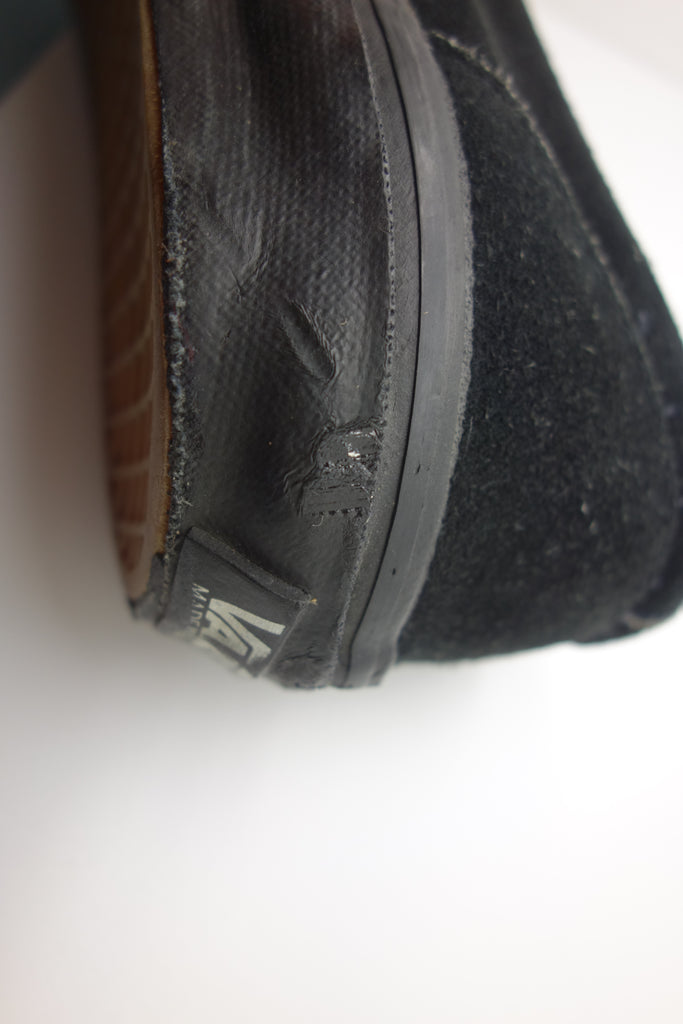 excellent used condition. the right shoe is perfect. the left shoe shows 1 very small spot of rubber hardening at the bend of the first foxing & some to the friction at the heel. from experience these will hold up to normal wear with possible rubber loss at bends. wear at own risk.