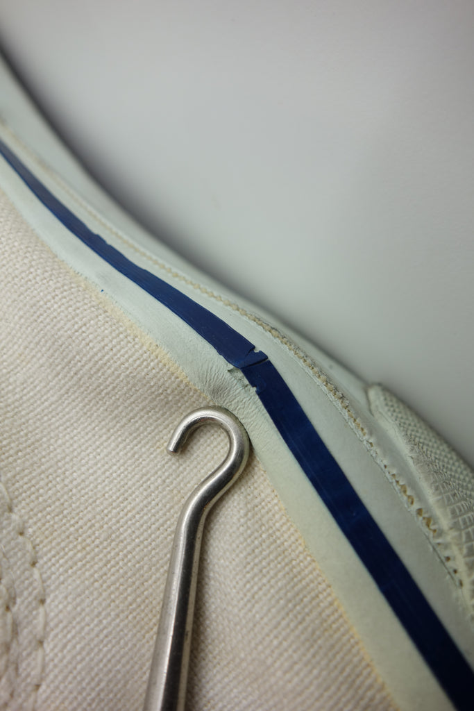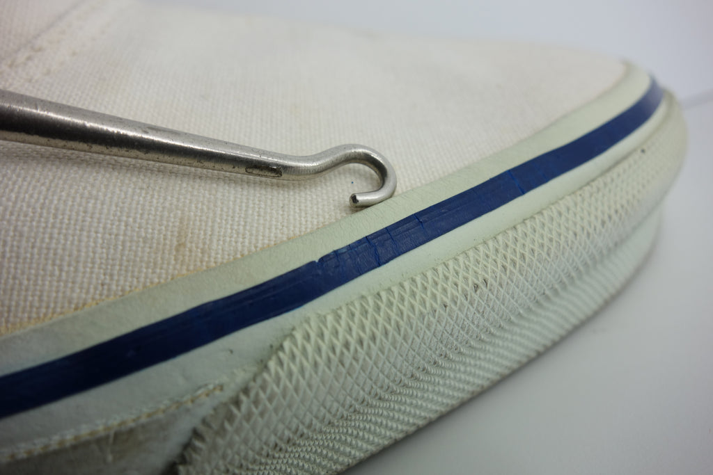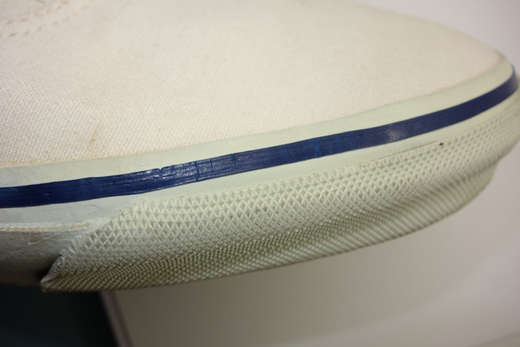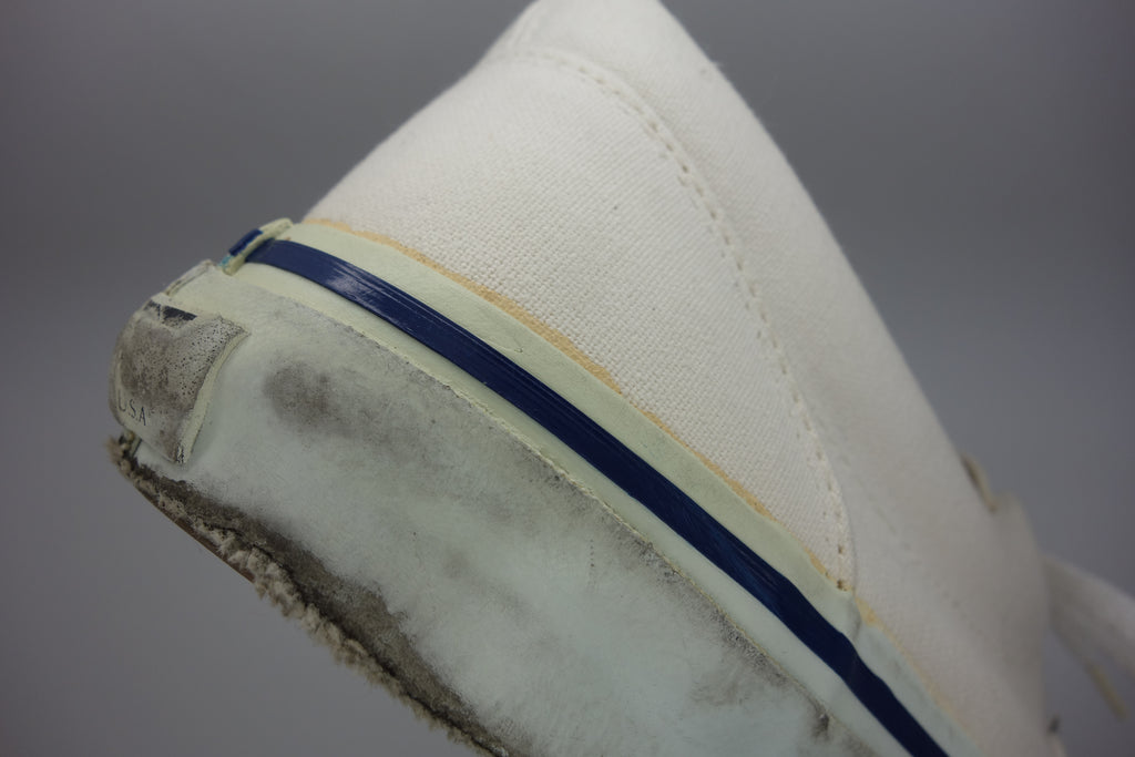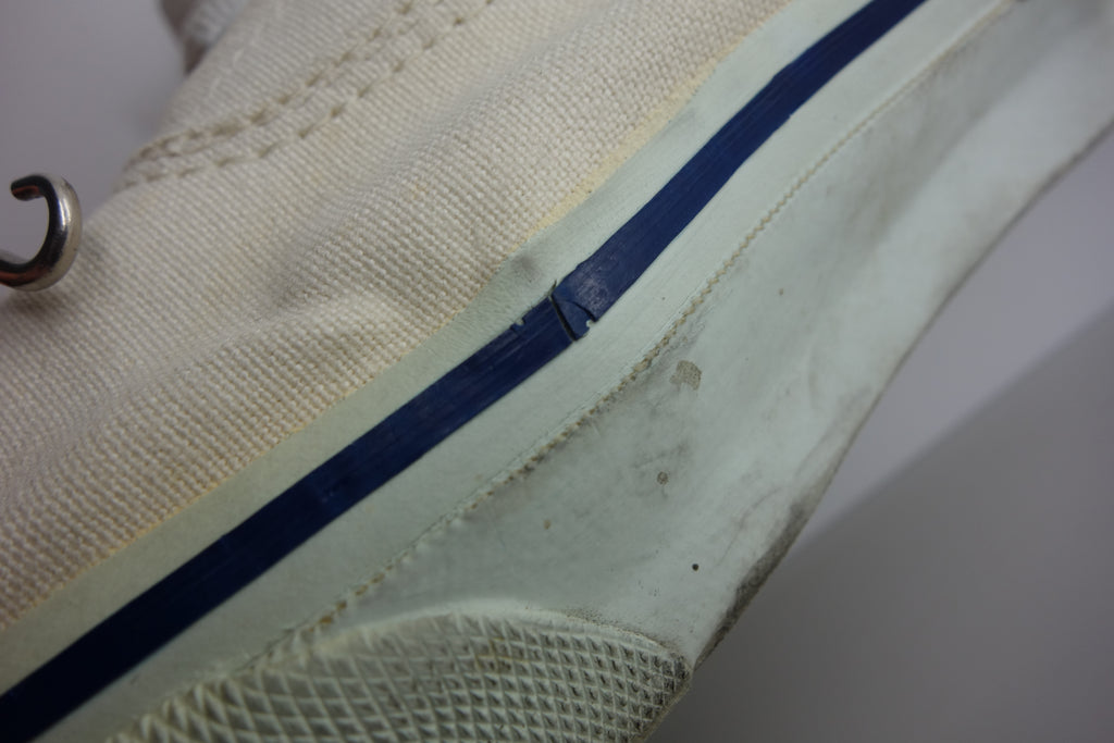 very good used condition. rubber remains predominantly soft & flexible except for the blue foxing stripe which does show hardening & some cracking. from experience the stripe may chip away at bends however not erode too deep into the foxing underneath. some micro cracking from crush injury. THESE ARE CUSTOM WIDE fitting but generally means there is excess uppers only. brown box is included but not pictured