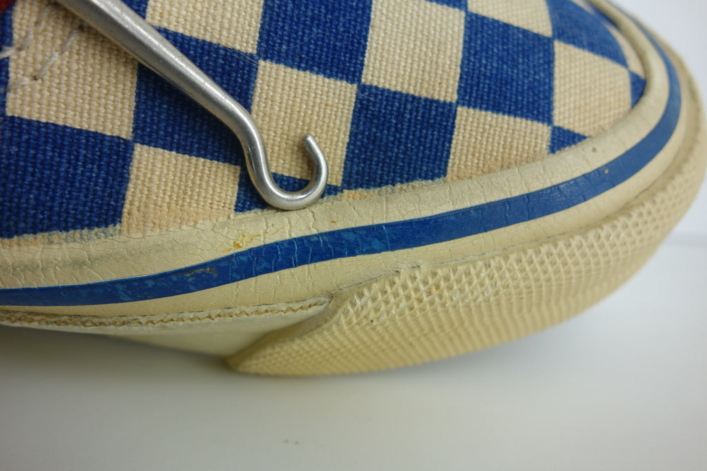 excellent used condition. all rubber remains soft & flexible despite widespread dryness to the left shoe. the first foxing on the left shoe is crusty more than it is hard however may crack over time. some stress cracking from crush injury. no original laces. wear at own risk