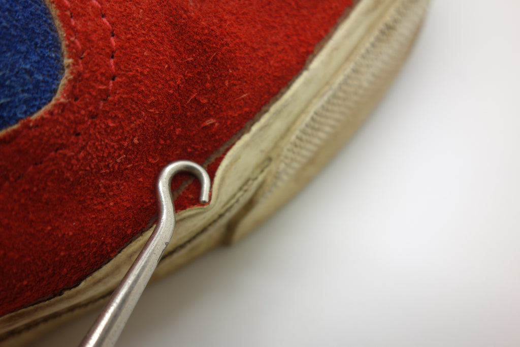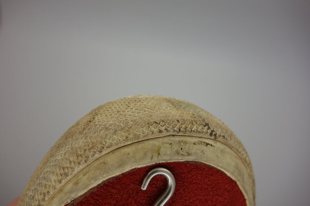 very good used condition. all rubber remains super soft & flexible with only 1 significant area os separation from suede on medial right toe. minor stress cracking from crush injury also at toes. there is 1 significant split to the base of the vinyl collar on 1 shoe however has not split or exposed foam. size is no longer visible however im very confident these are US9.5. saying that, full grain leather examples like this fit big, like a style #46, & these pretty much fit like US10. check meaures!