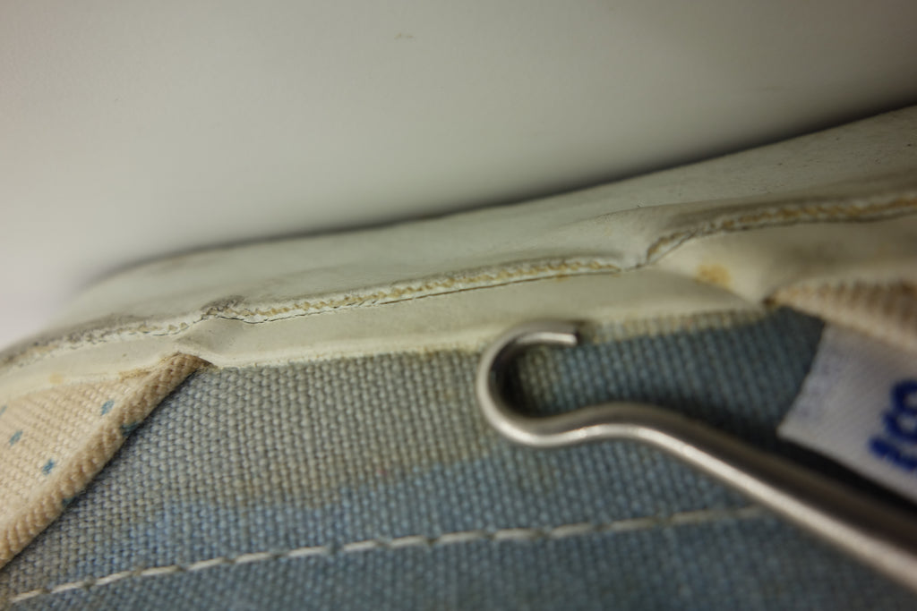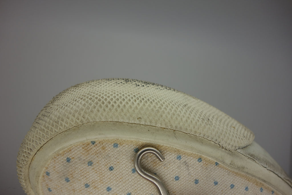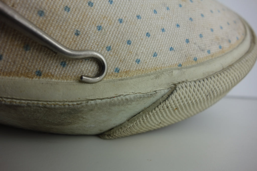 good used condition. all rubber remains soft & flexible despite some stress cracking from crush injury. some age spotting to canvas & discolouration under the internal toe cap.