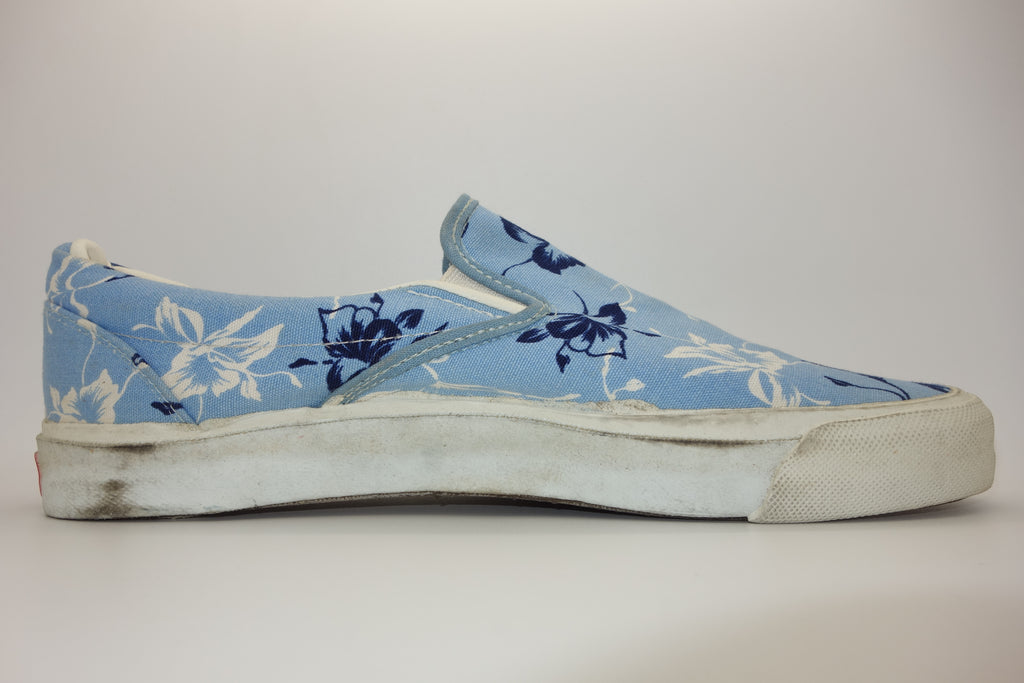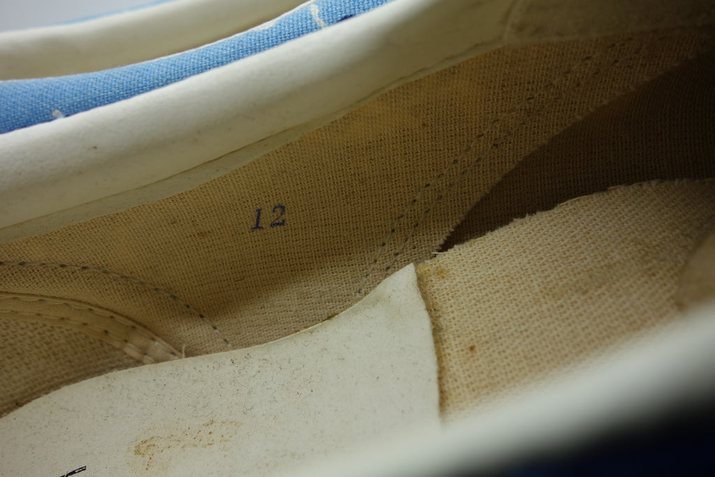unworn with very light storage wear & 1 water blemish on right toe. expo on box possibly indicates display model. all rubber remains super soft & flexible. og tissue paper still stuck to soles will peel away. box is knackered. 1 end is missing & the other end is split down 1 side.