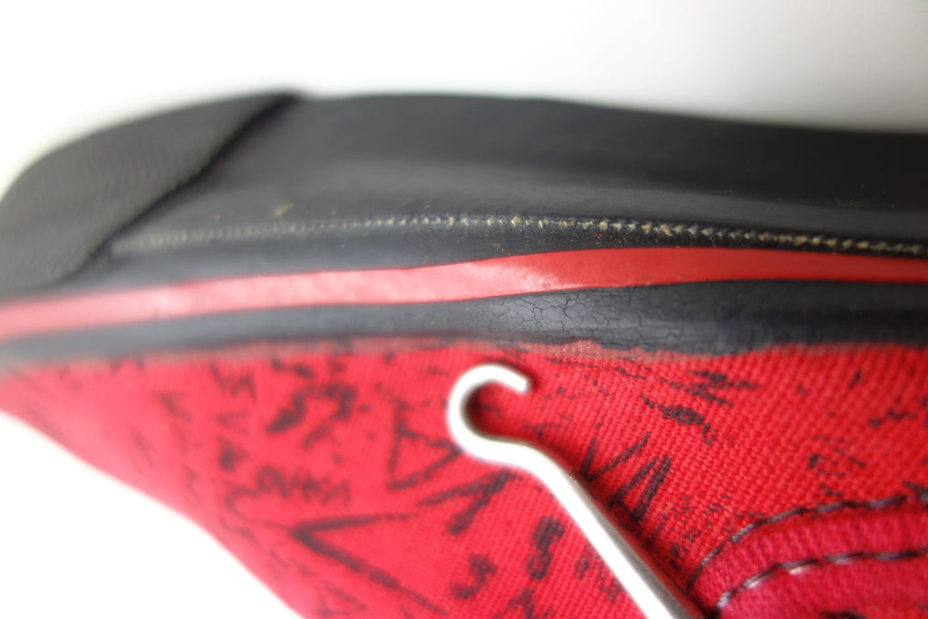 the US7 shows minimal tissue paper adherenece & impression marks to rubber. the right internal toe counter has stiffened with resulting firmness to fisrt foxing around the toe. this may lead to cracking however im confident will hold to normal wear. the left rubber is soft & flexible. see pics 21-23