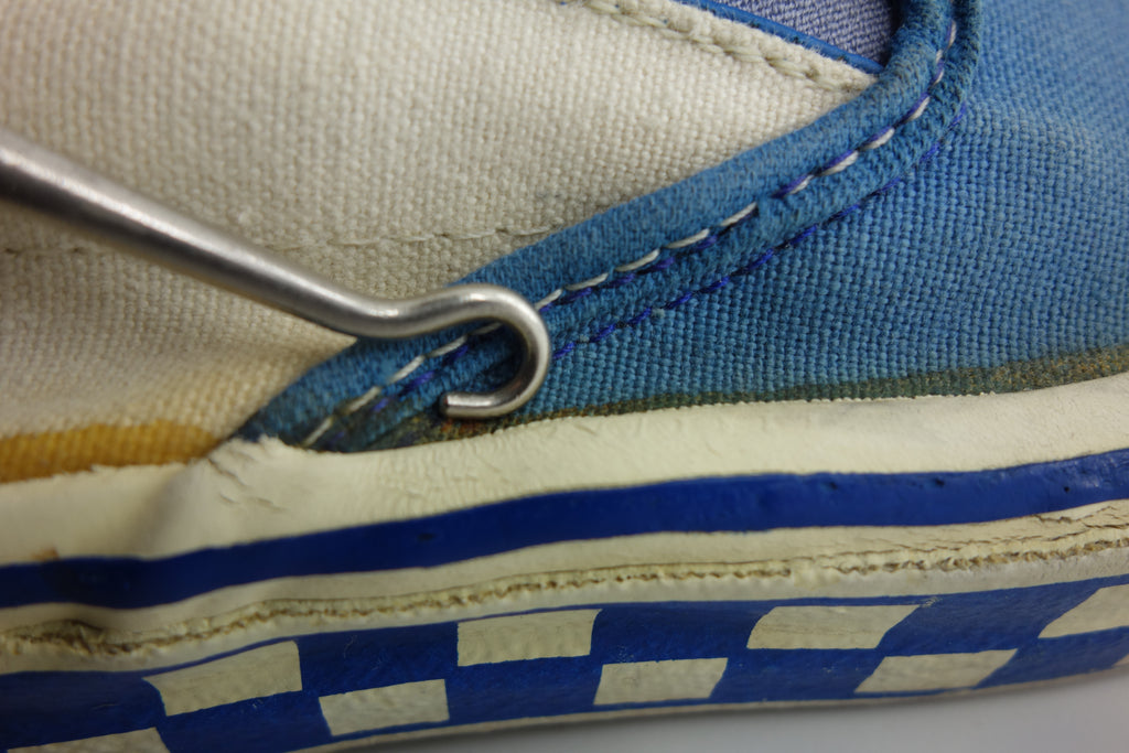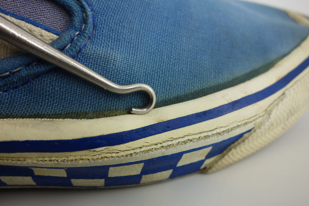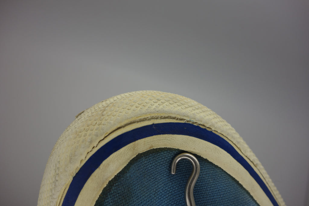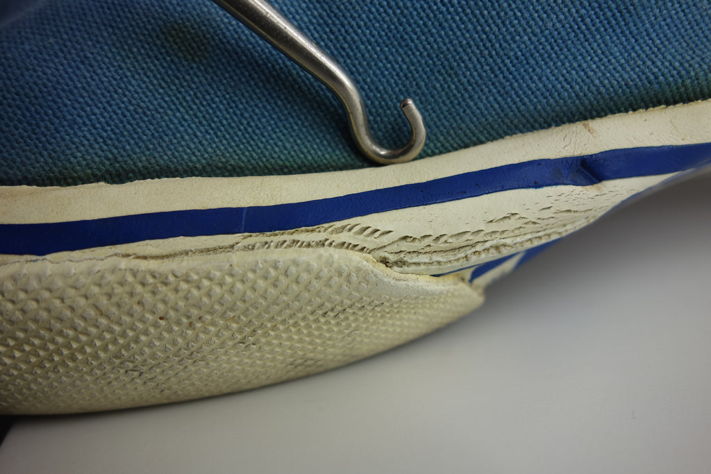 very good used condition. the majority of the rubber is still soft & flexible except foe directly under the elastic gusset on the right shoe & the toe of the left shoes. these areas have hardened & may crack over time however are not in significant areas of bend/flex which is positive. there is 1 significant gouge to the rubber at medial right bend however remains soft. widespread micro stress cracking from crush injury during storage. from experience they will hold up to normal wear despite minimal loss of rubber flakes.
